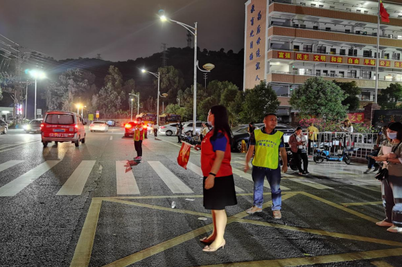 星空电子党团志愿者分队队员现场维护交通秩序